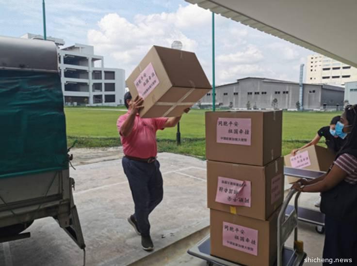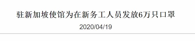 4月17日,使馆调拨6万只口罩,运往新加坡外籍劳工中心。