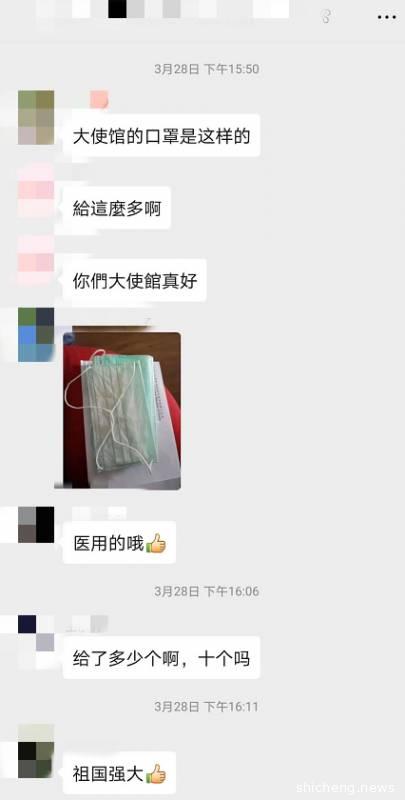 当时,很多小伙伴在群里表示,收到了大使馆的口罩。