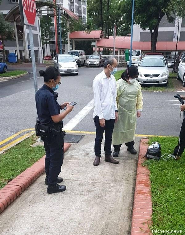 男子追不上张先生,转身回去拿电板车,张先生心知跑不过电板车,跑了三座组屋后躲在第128座组屋的楼梯口报警。警方和救护车大约十分钟后抵达现场。