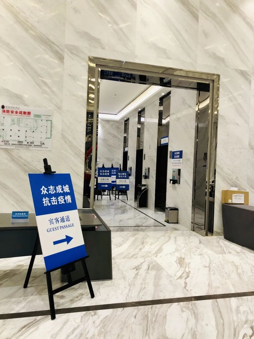 拿到了房卡准备上楼,电梯间外两边都坐了工作人员,提醒我们两人之间的间距。我进入电梯间后发现刷卡之后的楼层,和写在封面上的卡号不一致,于是只有返回大厅找前台。