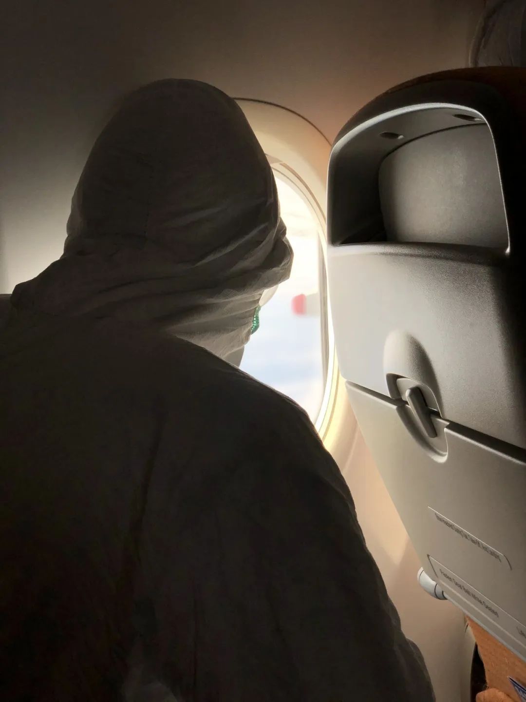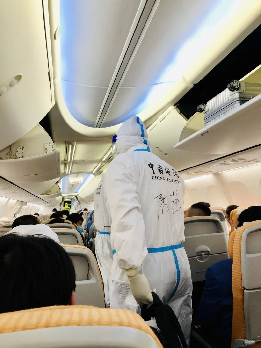 于是我们又经历了一次脱防护服穿防护服,安检,登机一整套程序之后,再次登机起飞。