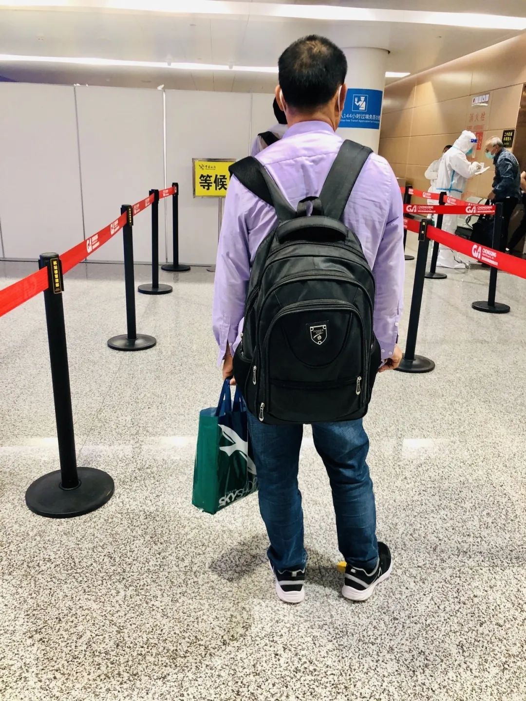 一行人欢呼雀跃地去安检。工作人员要求大家脱下防护服过安检,过完之后再重新穿上。护目镜也必须摘下,因为安检之前还有一轮体温检测,护目镜或带有防护罩的帽子都会造成体温检测结果偏高。