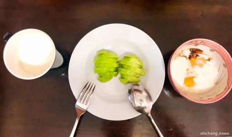 早餐是三餐中最容易的。我通常利用洗漱的间隙,把水烧开,烫上两个鸡蛋,热上牛奶,切一个牛油果,或者洗一点蓝莓——营养丰富,又清淡爽口。我比较喜欢新加坡式的半熟鸡蛋,控制水温和时间,烫到蛋白刚熟、但仍然保持流动的状态,加上几滴酱油,撒上一点白胡椒粉。牛油果切成片状的好处就是可以用叉子,方便一只手吃东西,一只手刷手机新闻。