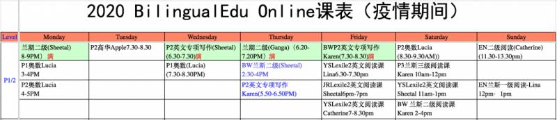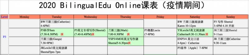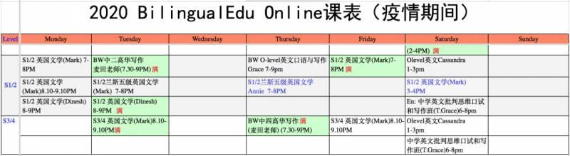 2020年BilingualEdu K1-中学已经开课的课程 小编放在下方 给大家做个参考~ (课程在调整中,会有些许变动)