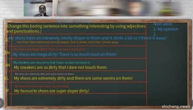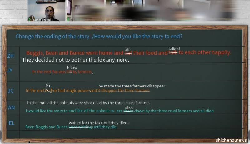 这是老师上二级阅读课的截屏,老师会时不时叫大家分别回答问题,写下来。无论一段话还是一句话,老师都会一个词一个词的改,这张图改了时态,被动语态,动词的过去式和句式。孩子们就是在犯错,改正中进步的。