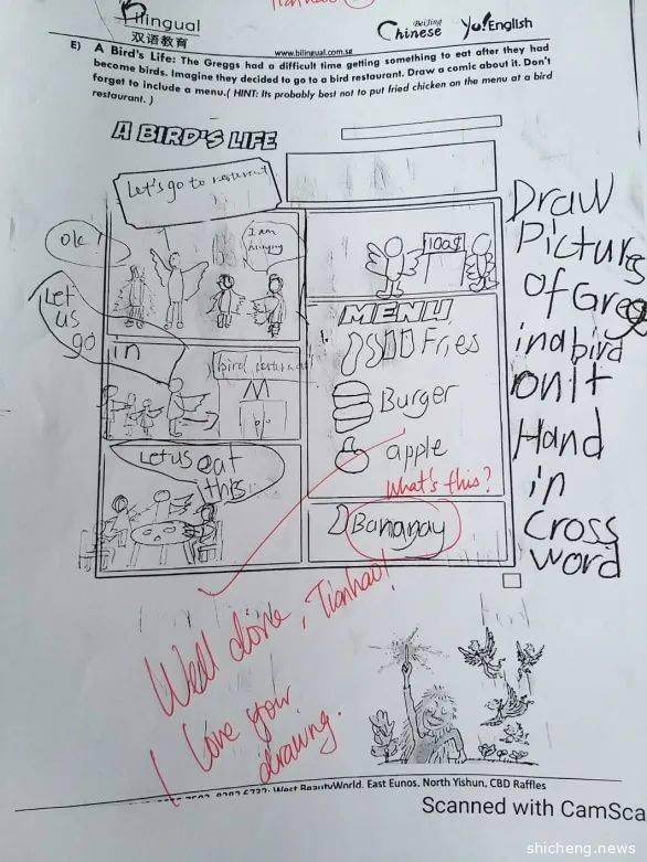 我朋友范琳,家有2女儿,大的目前在新加坡名校就读P3(Rebecca),小的P1(Susie)。前两天她给我看了女儿的作业,直呼求救,看了下面的图片你就能懂,她气到肝裂~