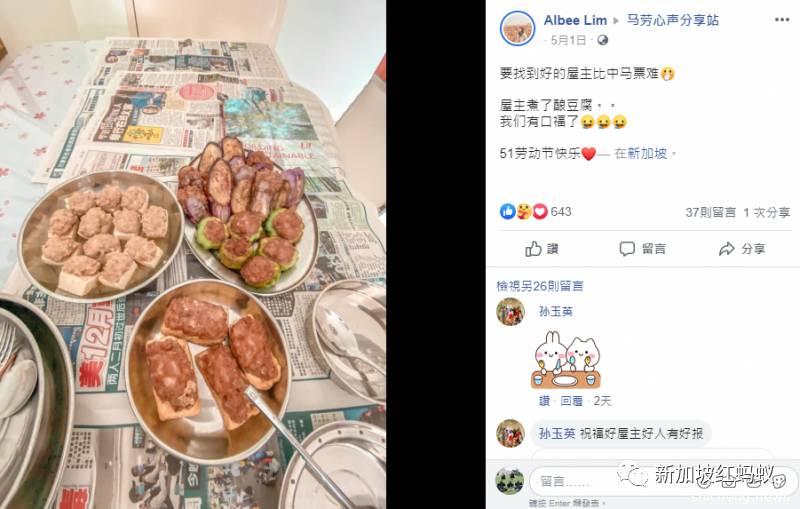 同在屋檐下,房东有好料也不忘与自己的租客分享。 “屋主煮了酿豆腐,我们有口服了。五一劳动节快乐!”