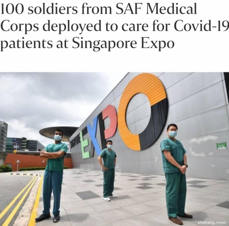 根据最新消息,100名来自新加坡武装部队医疗部门的士兵,已经进驻新加坡会展中心隔离区,照料轻症的病患。