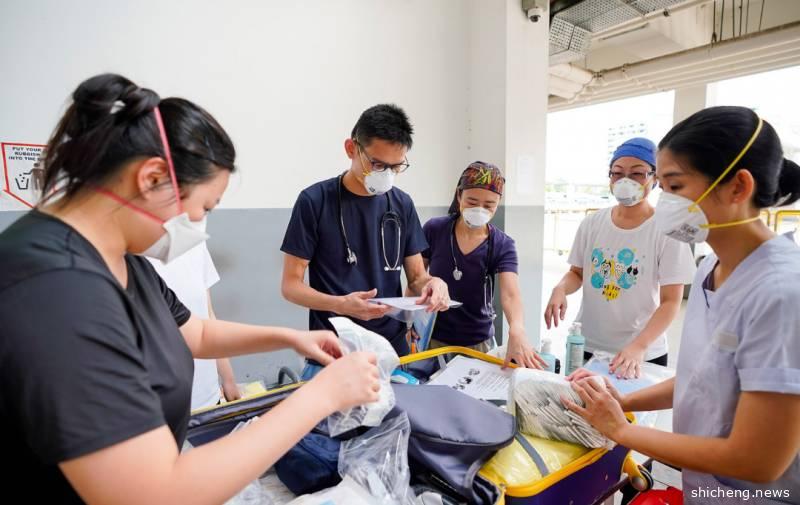 新加坡医疗前线的除了医护人员,还有“兵哥哥”。