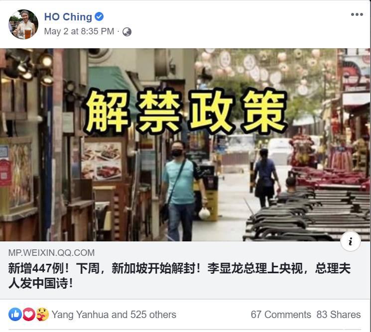 新增447例!下周,新加坡开始解封!李显龙总理上央视,总理夫人发中国诗!只有正能量和团结才能够支持我们继续走下去,加油,新加坡!