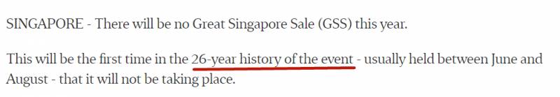 刚刚官宣了!今年的GSS新加坡大促活动取消了,这可是26来的首次。