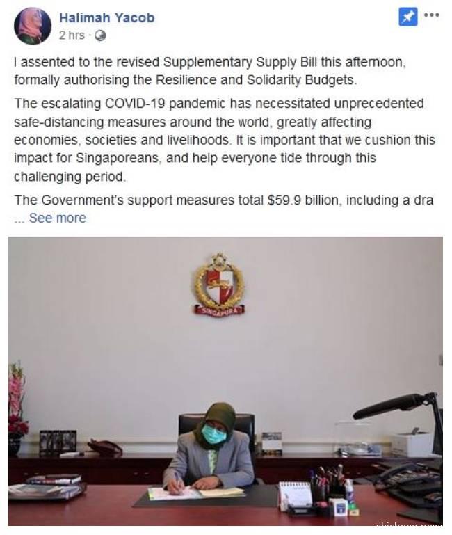 新加坡总统哈莉玛4月9日,正式签字批准两个动用国家储备金的预算案。