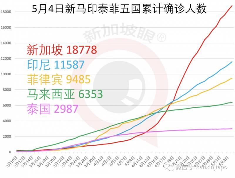 在邻国,印尼为11587例确诊,菲律宾为9485例,马来西亚为6353例,泰国为2987例。