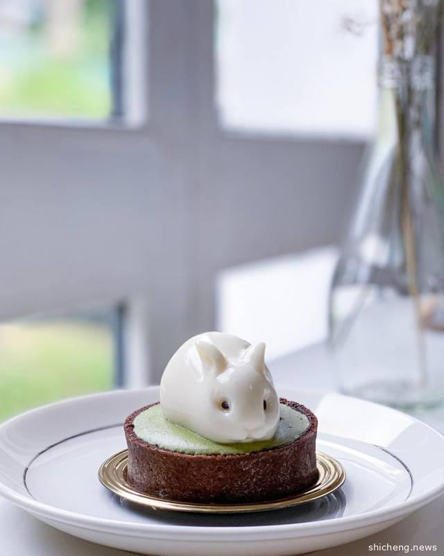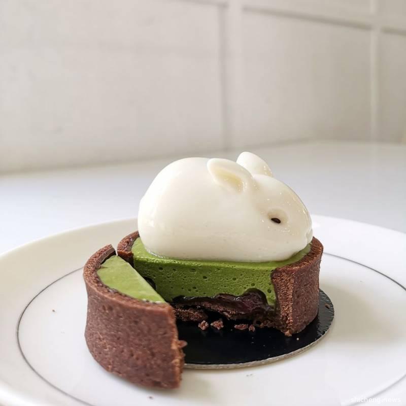 Bouf超级可爱的吉格利兔子挞Jiggly Bunny Tart ($8.50++),抹茶慕斯上趴着一只特超萌的兔子豆布丁,“duang~duang~duang~”的超级舍不得一口吃掉!