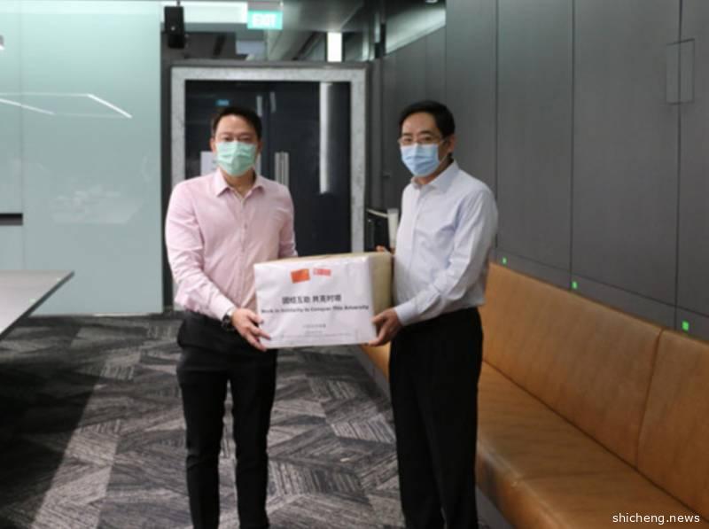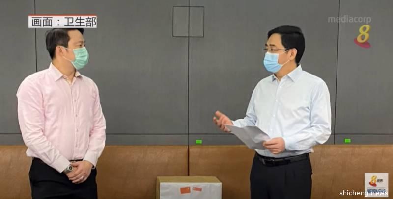 中国驻新加坡大使洪小勇和新加坡交通部兼卫生部高级政务部长蓝彬明,在新加坡卫生部办公室共同出席了捐赠仪式。