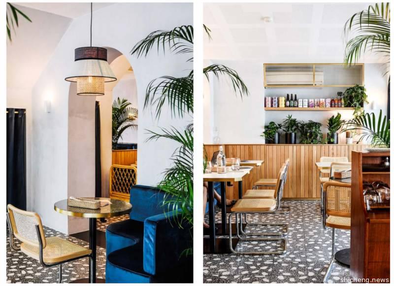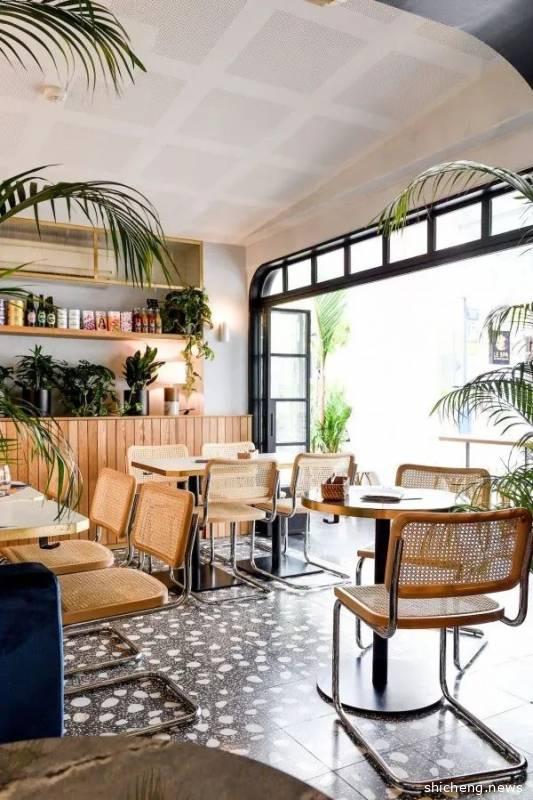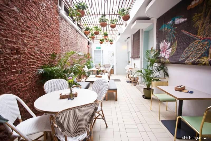 Merci Marcel Tiong Bahru配合中峇鲁的复古感,使用竹帘子、红砖、藤制家具等复古元素,充分营造了复古老旧的氛围。除此之外,其黄色格子地砖之灵感源自法国家喻户晓的小丑皮埃侯(Pierrot)的标志性服饰,灯饰与桌椅皆是从法国特别订制,并巧妙以植物添加绿意。这里的另一特点是它附加了露天庭院,天井撒下的自然光线衬托咖啡馆的典雅与浪漫氛围。