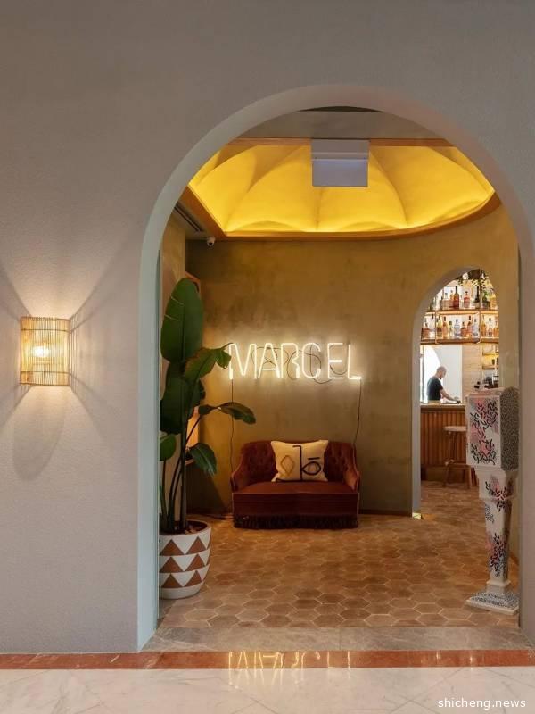 大教堂式拱门,优美的拱门,水磨石地板,画龙点睛的艺术品和盆栽植物,Merci Marcel每一处的设计都恰到好处。