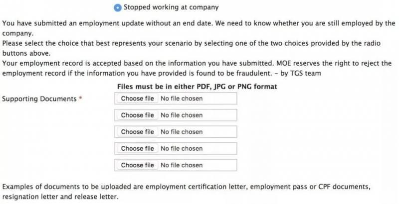 如果出现换工作的情况,则需要更新上一份工作的状态,在Update页面勾选Stopped working at company,并上传相关文件。
