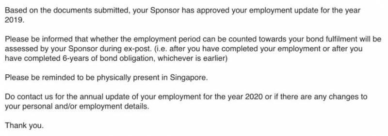 SM2奖学金得主除了上面提到的Tuition Grant外,还需要履行另一个为期6年的SM2 Scholarship服务期。以NTU为例,我们每年会收到Gruduate Scholars发的邮件,要求我们更新工作情况。我们需要按要求填写一个表单,如下图所示:
