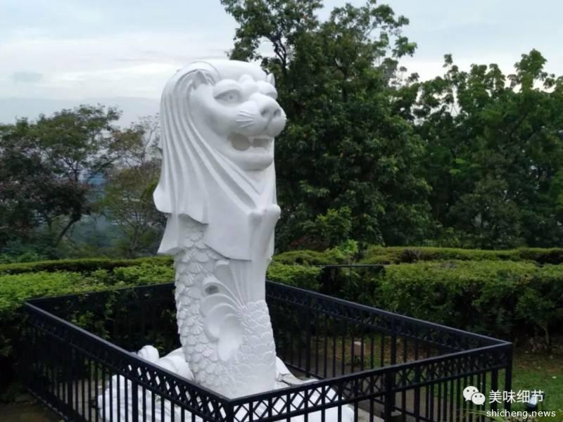 第四个地方是花柏山,它与波浪桥是一体的。走过亨德森波浪桥,就到了花柏山,这里是搭乘空中缆车前往圣淘沙的必经景点,一座滨海的小山丘,高度只有117米,却坐拥360度开阔视野,将城市海港及邻近岛屿全数收纳眼底,可远观新加坡的港都容颜、圣淘沙以及邻近的印尼岛屿。绿茵中伫立著一只白色小鱼尾狮塑像,是游客们拍摄到此一游的最佳场景。我们下午到这里时,有很多旅游大巴停靠在附近,游客下车后在最高点拍照,我看了一下,大多数是我们国家的游客,听口音有福建、东北、四川等地游客,看到他们好亲切。儿子的公司在圣淘沙附近,所以我们能看见他的办公楼。
