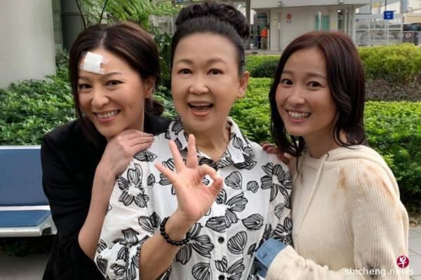 朱咪咪(中)回港拍剧,和原剧班底滕丽明(左)相见欢。(图由朱咪咪提供)