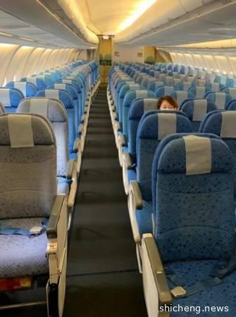 :朱咪咪搭飞机,第一次看见那么空的机舱。(图由朱咪咪提供)