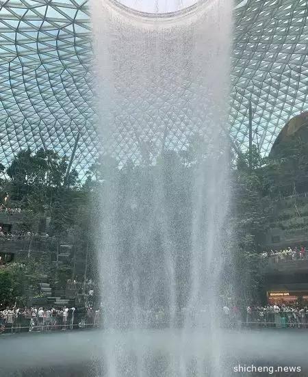 从玻璃穹顶倾泻而下的瀑布,和旁边的森林谷一起,幻化成了如梦如幻的仙境。