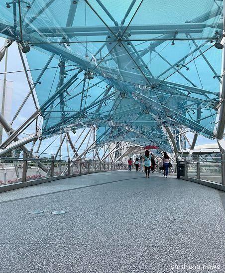 从滨海湾的音乐艺术中心沿着螺旋桥去滨海湾购物中心,可以惊叹当地的建筑艺术!