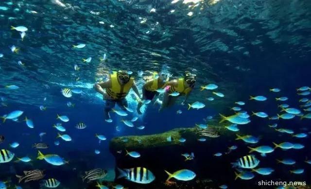 和两万多条热带鱼一起浮潜,目光所及皆是五彩斑斓,成群结队的小鱼儿从身边游过。