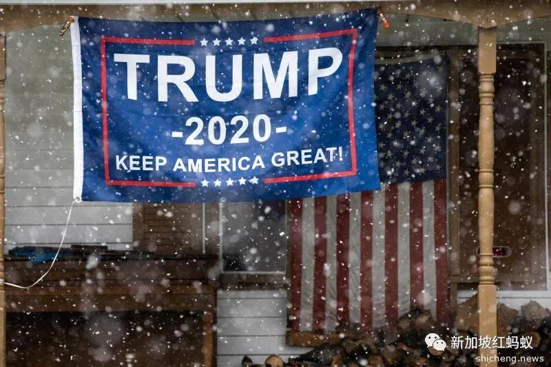 美国密歇根州的特朗普支持者在住家外悬挂支持特朗普连任的旗帜。(路透社)