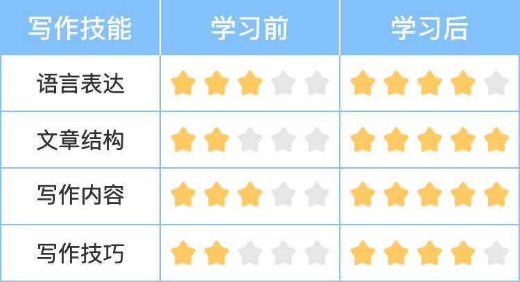 长按二维码添加课程顾问 免费锦囊课 如有问题请添加微信:S16601056501 写作技能整体对比 学习前VS学习后