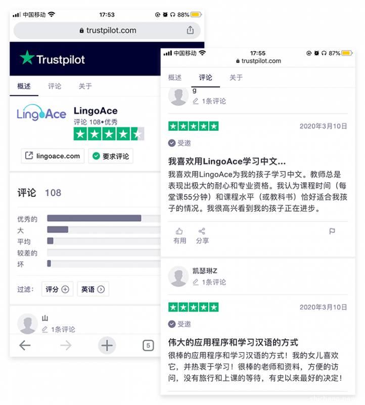 LingoAce不仅在超权威的三方点评网站Trustpilot 是四级评分: