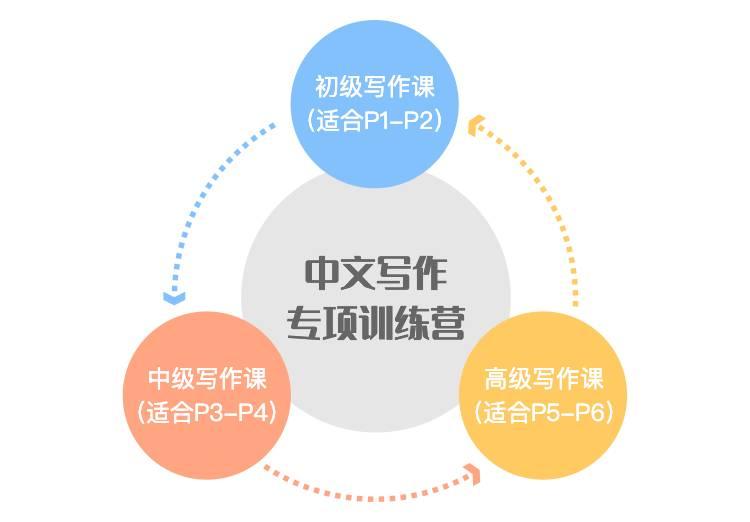 写作课程内容循序渐进,把任务拆分成细小的单元,逐个击破。还分为三个等级,不同年级的学生都可以上: