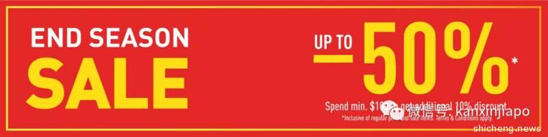 知名运动品牌有高达50%折扣,消费100新币还可享有额外10%折扣。