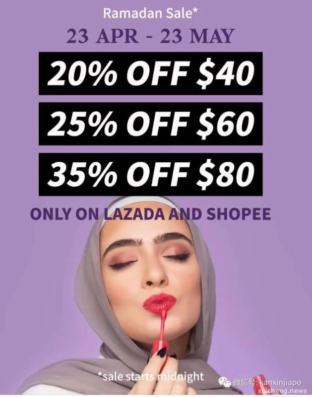 斋戒月促销,消费满40新币可享有20%折扣,消费满60新币可享25%折扣,消费满80新币则有35%。