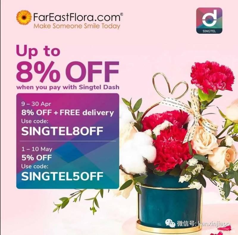 母亲节促销!消费最少100新币,再以Singtel Dash付款,就可享有22%折扣呀。