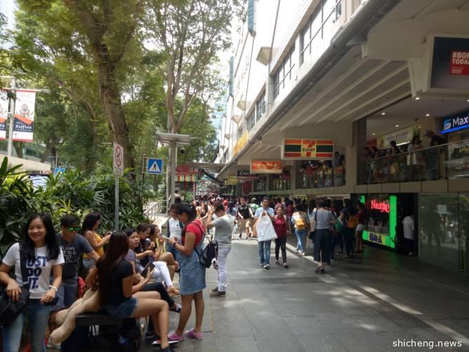 许多外来女佣会在周末“涌入”新加坡商业街乌节路