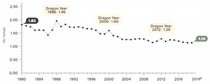 新加坡1980-2019年出生率(来源:新加坡统计局)