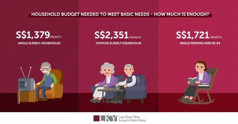 李光耀公共政策学院(LKYSPP)去年发布了一份报告:在新加坡养老,每月最基本的生活开销,需要1379新元。