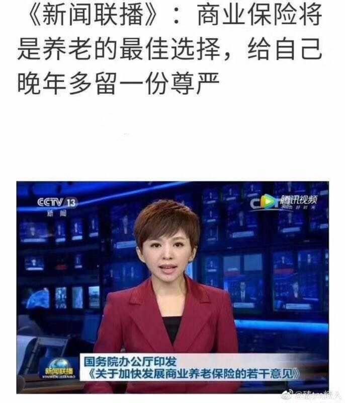 上个月,央视新闻联播又大力推了一次商业养老保险(退休保险),国务院办公厅专门印发了《关于加快发展商业养老保险的若干意见》。