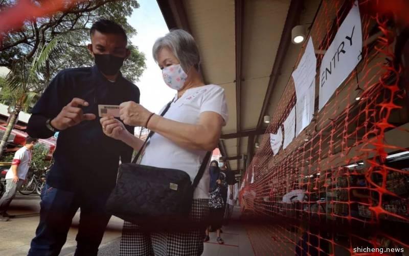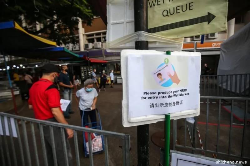 裕廊西巴刹外也贴有许多告示,让前去买菜的公众提前准备好身份证,以便迅速通关。