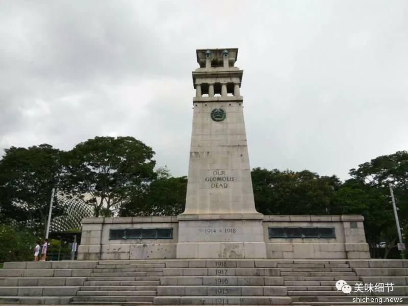 6、和平纪念碑。它位于政府大厦草场东面,是用以纪念二战时因日本占领新加坡而丧生的五万多平民而建。四个92.5米高的白色尖柱高耸入云,代表新加坡四大种族在二战期间(1942年2月15日至1945年9月12日)共同挣扎求存的精神,下面埋葬著从各乱葬岗挖掘出来的遇难同胞的遗骸。每年的2月15日,各族民众聚集在这里举行悼念战争蒙难者的活动,以此表达对蒙难者的敬意。