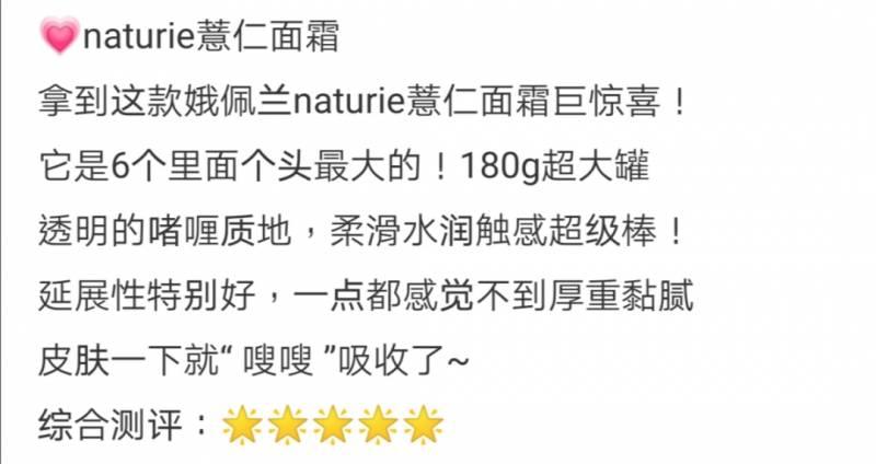 会呼吸的春夏面霜! 娥佩兰薏仁保湿啫喱面霜 品牌:Naturie娥佩兰 产地:日本 规格:180克 适合肤质: 所有肤质的成年人