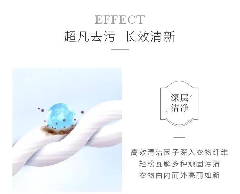 洗:高效清洁因子 可以深入纤维 轻松瓦解多种顽固污渍