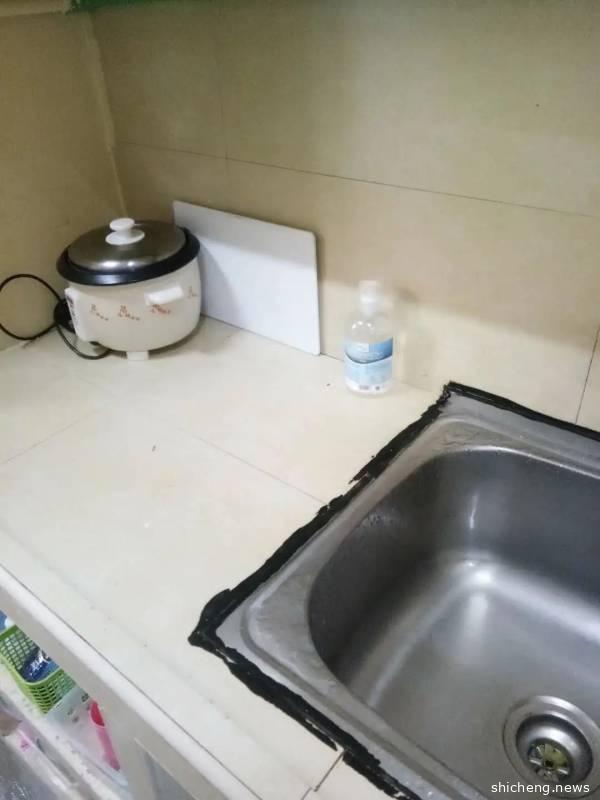 他们这个宿舍,一套房有三个卧室,每间卧室住四个人,12个人共用厨房和卫厕。带大家看看他们的厨房和卫厕,是不是也很干净?