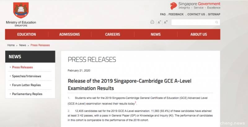 2019年参加新加坡A-Level考生总数约1.2万人,至少通过3门H2考试和1门GP的人数是11583人,通过率高达93.4%