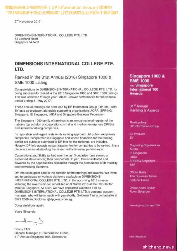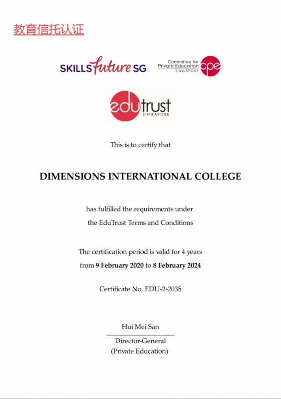 新加坡私立教育理事会(CPE)颁发的四年EduTrust教育信托认证(4-Year EduTrust Certification);博伟荣获由DP信息组织(DP Information Group)颁发的“2018新加坡千强企业成就奖”且在获奖的企业/组织中排名第3 新加坡标新局颁发的新加坡素质评级星级认证(Singapore Quality Class Star);新加坡标新局颁发的新加坡服务评级(Singapore Service Class)。
