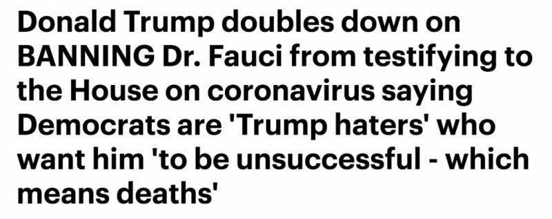 近日,特朗普又严禁福奇前往国会为抗疫调查作证。