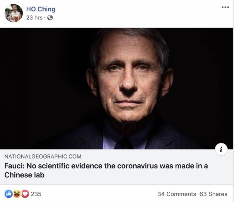 而这一回,是美国的传染病学权威专家福奇站出来辟谣。