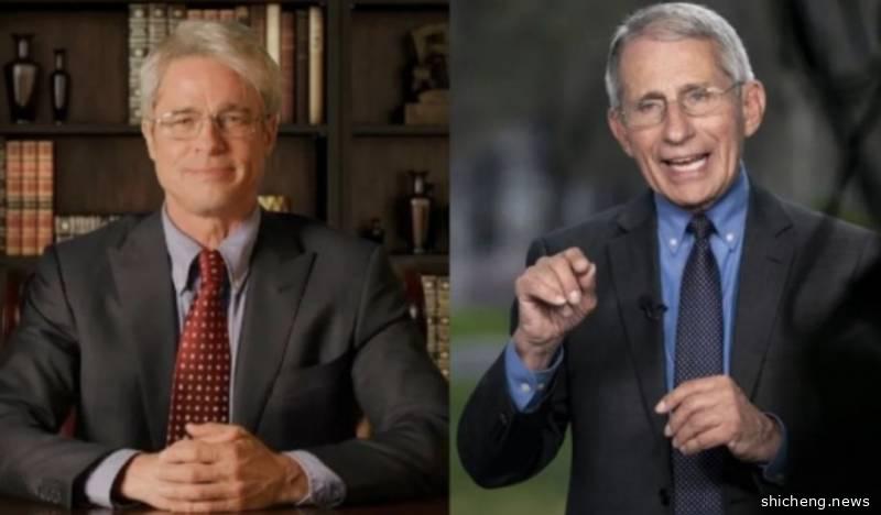 好莱坞著名影星布拉德·皮特在美国的人气综艺节目上,还特地扮成福奇,来调侃了总统特朗普最近的一些言论和行为。